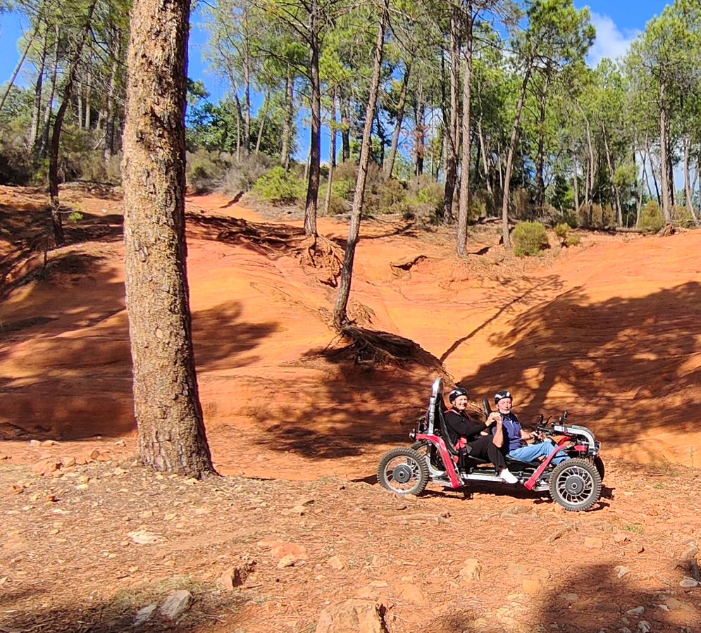Jean-Pierre décrit l'expérience SWINCAR comme étant plus qu'une simple balade, c'est une immersion totale dans la nature. La conduite fluide et silencieuse du SWINCAR permet à ses clients de se sentir en harmonie totale avec l'environnement. Il aime faire découvrir les sentiers sinueux des gorges de la Nesque ou explorer les carrières d'ocres, le Ventoux étant une magnifique région pleine de richesse.