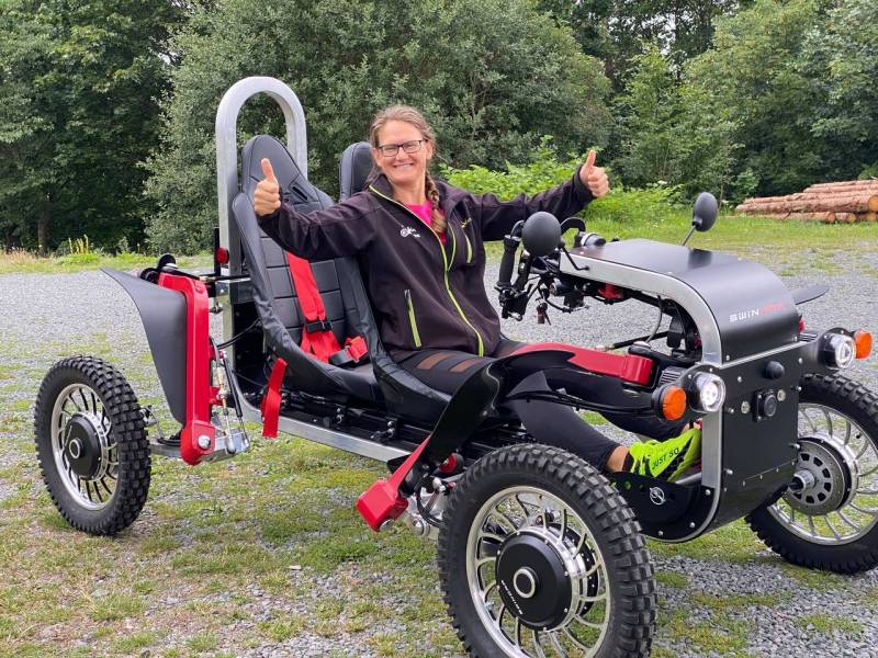 Le bonheur de piloter un quadricycle électrique tout-terrain SWINCAR se lit sur le visage de Ramona ! Gérants du parc de loisirs CRUDE HARZ en Allemagne, Ramona et Denis ont fait l’acquisition d’une trottinette homologuée SWINCAR pour diversifier leur activité.